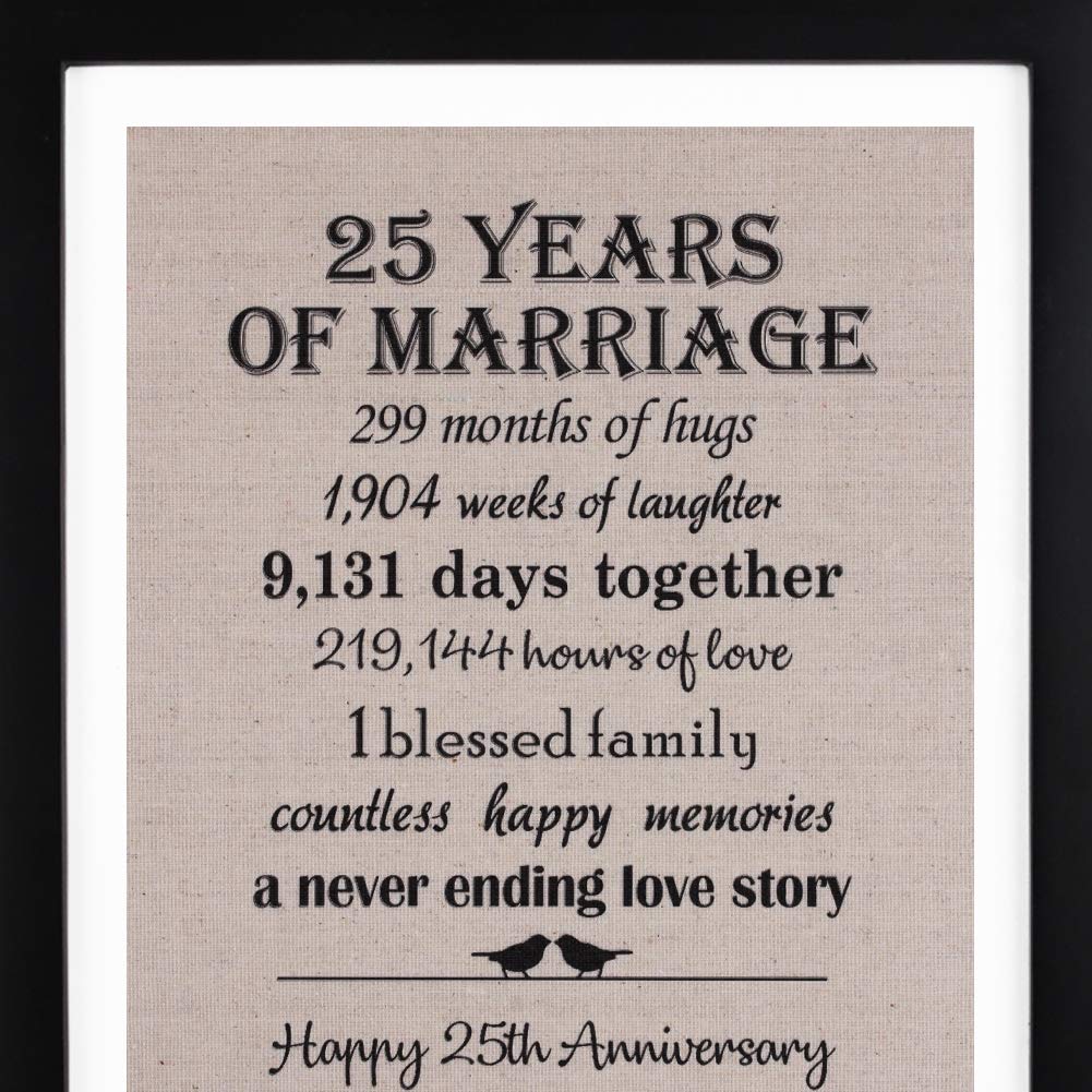 The celebration of wedding anniversaries dates back to roman times when husbands gave their wives a silver wreath for 25 years of marriage, and a gold wreath for 50 years. 5th march, 2016 was the 25th wedding anniversary of my parents. 25 years of happiness, may god continue blessing you and giving you more reasons to be together. 25 years is considered a major milestone in a marriage. Why not get the couple something from their loved ones that feature their loved ones?