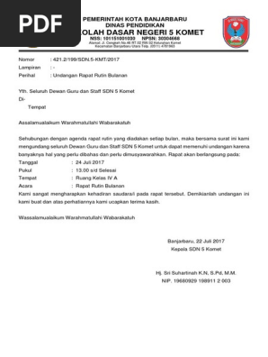 Download format surat undangan rapat orang tua wali murid salam edukasi. Di sini admin www.gurujumui.blogspot.com akan menampilkan secara lengkap adminitrasi tersebut diantaranya yaitu conyoh surat undangan rapat penyusunan visi, misi, dan tujuan sekolah, contoh daftar hadir rapat, contoh notulen rapat pengembangan kurikulum. Semoga dengan format format di atas bisa dijadikan referensi yang baik dalam pembuatan surat undangan rapat sekolah/guru. Kalau benar, saya hanya mau katakan. Doc surat undangan ahmad kartum academia edu.